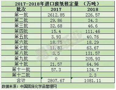 下图是2017年、2018年进口废纸批文数量对比。2017年自5月底发布第十一批进口批文以后,国内再未有新的批文产生。截止目前,2018年共发布十二批进口批文,是去年数量的38.5%,后期进口批文将会如何发布,我们拭目以待!